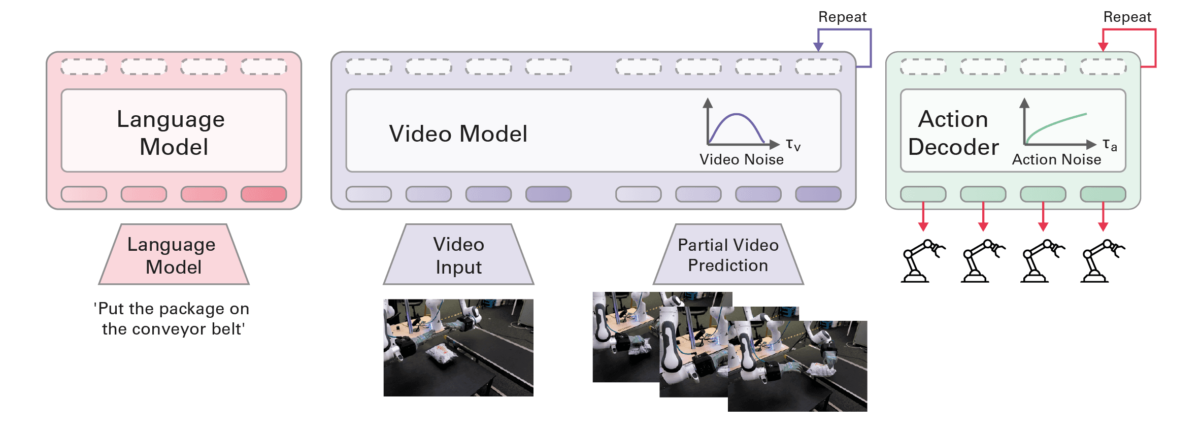 The one remaining obstacle we expected to face was inference performance: even if our model attained all these benefits, wouldn’t video generation incur excessively high cost? It involves the arguably wasteful generation of visual embeddings, which have much higher dimensionality compared to the low dimensional robot trajectories that we ultimately care about.